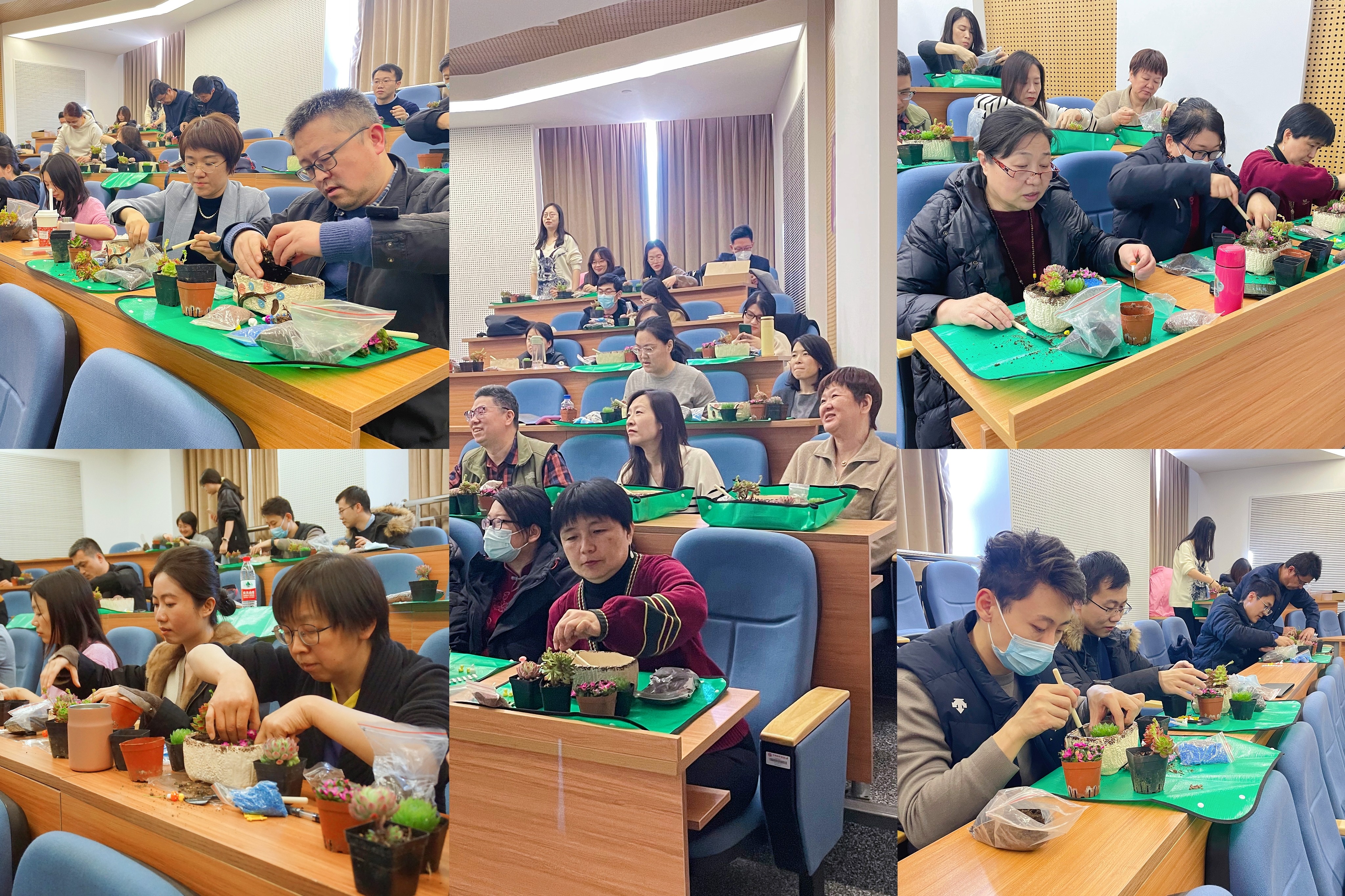 为丰富教职工的业余文化生活,增强教职工的幸福感和获得感,2024年3月6日,财税澳门六合论坛 分工会举办“桌面微景观”手工活动。50余位教职工共聚一堂,利用多肉植物、彩石装饰品、多彩花盆等一系列材料,亲手打造微盆景艺术品。澳门六合论坛 副院长、分工会主席陈蕾主持活动。