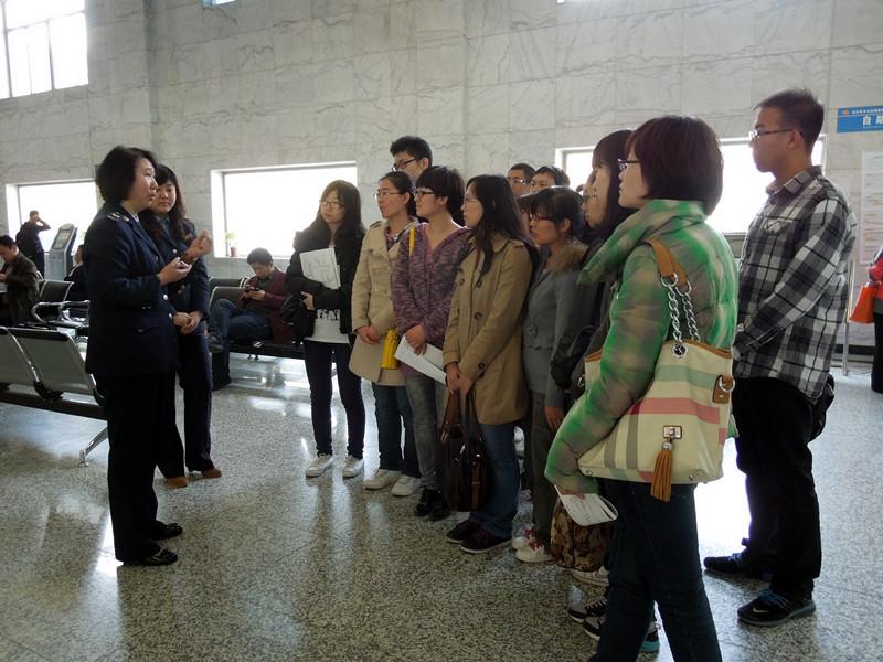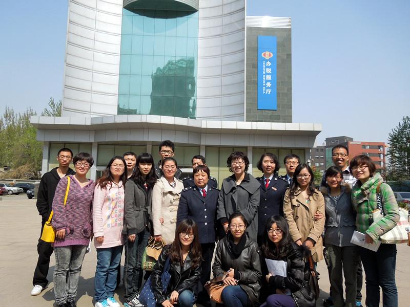 2012级税务专业硕士班同学在刘颖老师的带领下,先后来到北京市丰台区企业联合服务大厅和北京市丰台区国家税务局办税服务大厅,进行税务管理课程的课外实践活动。本次活动的目的是,在课堂中学习过税务管理理论、政策、法规的前提下,走出课堂,亲身感受税务机关一线工作,并体会理论知识在实践中的应用与差别。与此同时,4月正值我国一年一度的税收宣传月,税务机关也提供了一系列的便利条件,针对各个参观实践环节精心安排讲解人员,体现培养和宣传相结合的理念。