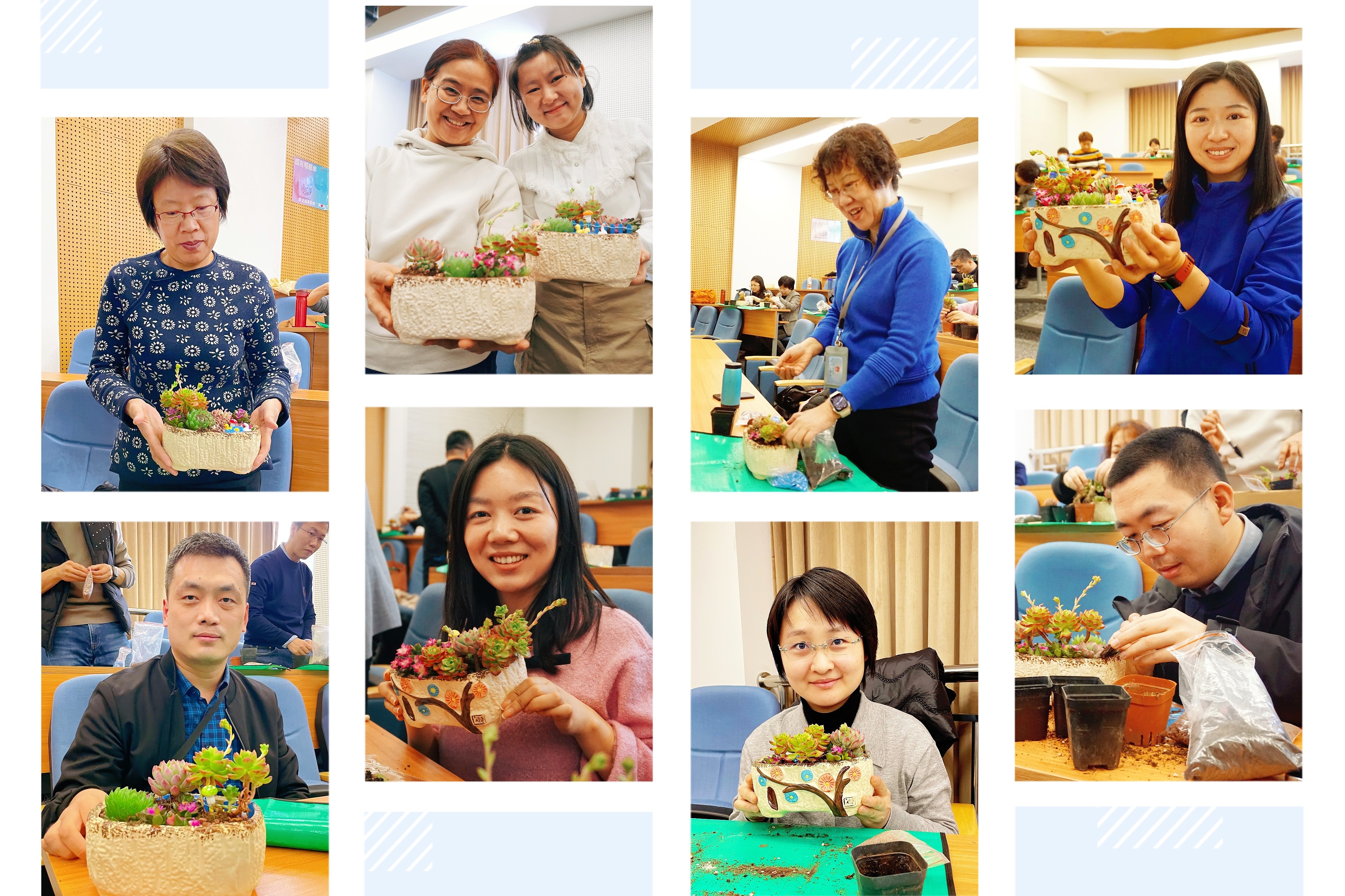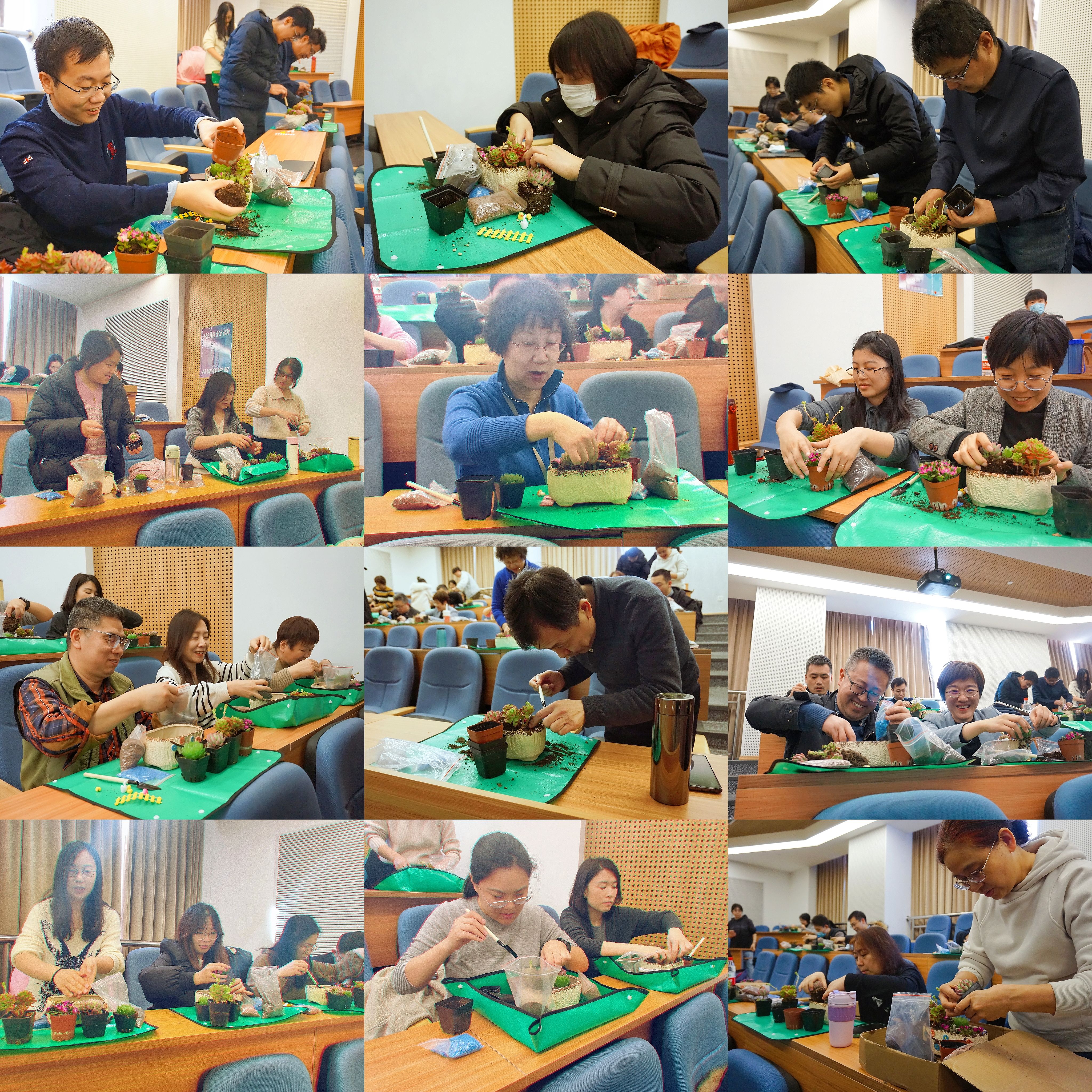 为丰富教职工的业余文化生活,增强教职工的幸福感和获得感,2024年3月6日,财税澳门六合论坛 分工会举办“桌面微景观”手工活动。50余位教职工共聚一堂,利用多肉植物、彩石装饰品、多彩花盆等一系列材料,亲手打造微盆景艺术品。澳门六合论坛 副院长、分工会主席陈蕾主持活动。