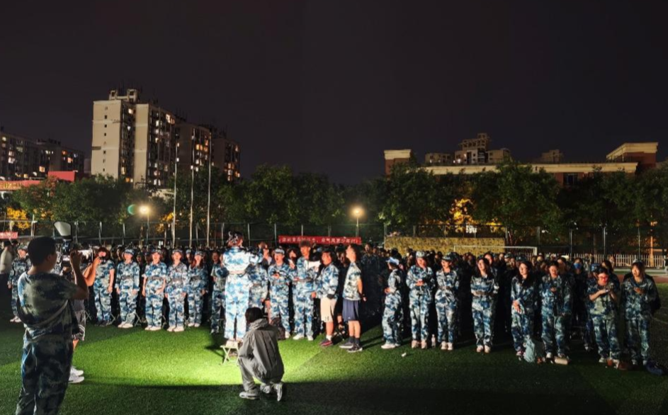 军训之夜,操场上回荡着激昂的歌声。9月18日晚,拉歌活动中,各连队热情呼应,《我和我的祖国》响彻夜空,唱出了新时代青年心中最真挚的情感。满溢的青春热情汇成歌声,瞬间驱散了白天的疲惫,心中只剩下骄傲与自豪。星空下,歌声与笑声交织,成为财税学子最美好的青春记忆。