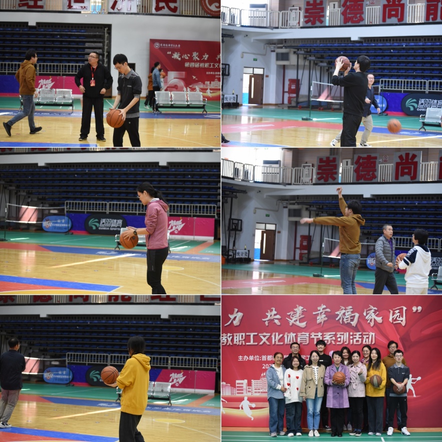 本次文化体育节的第二类项目是集体项目,包括能量传输、不倒森林和趣味篮球。老师们积极参与,展现出了充沛的热情和勇于挑战的竞技状态。澳门六合论坛 分工会还特邀往届参赛经验丰富的老师给予技术讲解和指导,大家在欢声笑语中进一步熟悉了项目比赛规则和要领技巧。例如,能量传输和不倒森林都是需要手眼协调、灵活反应的比赛项目;趣味投篮赛不仅考验老师们的投篮技术水平,也对老师们的心理素质和团队协作能力提出了很高的要求。